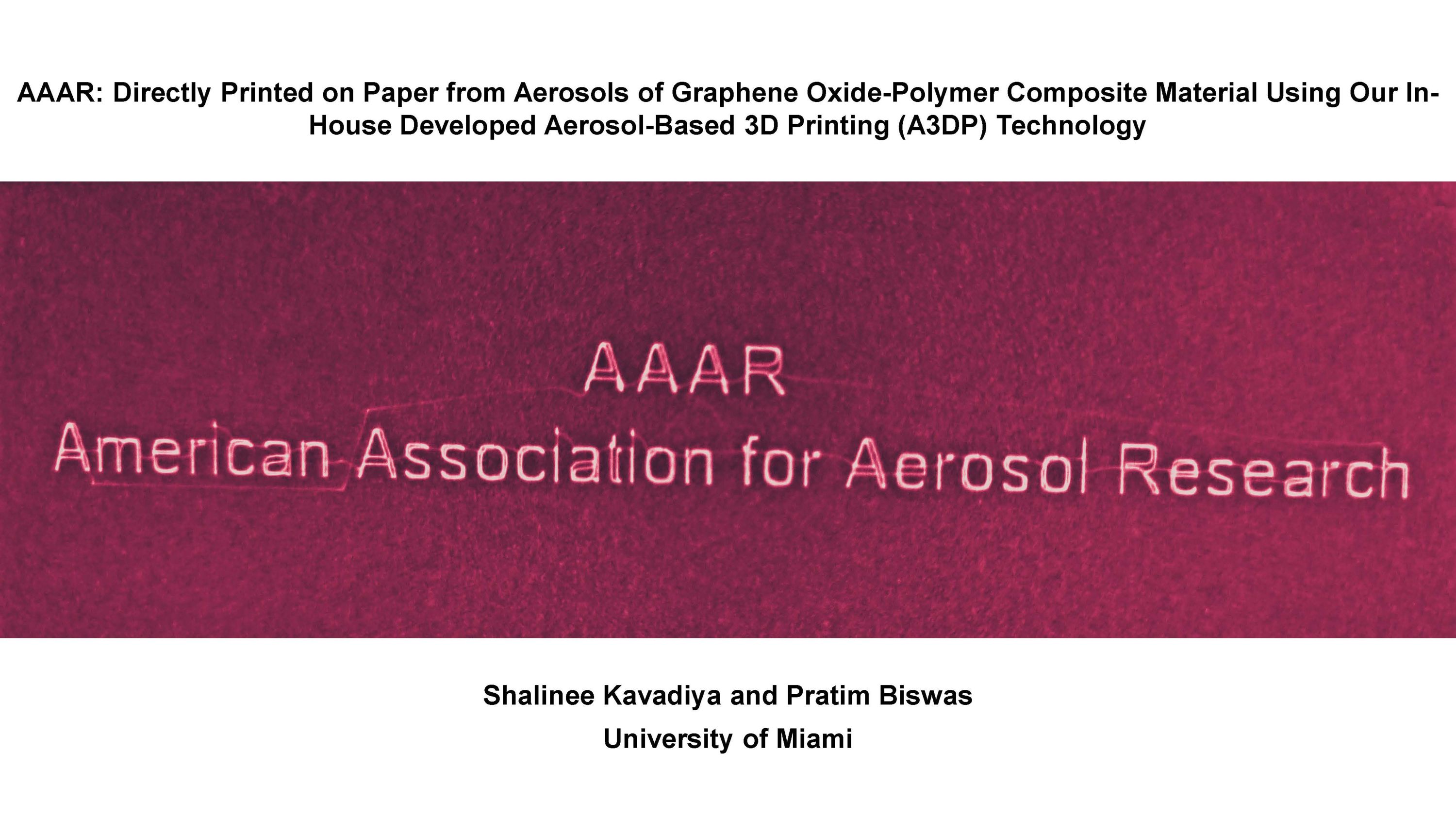 AAAR: Directly Printed on Paper from Aerosols of Graphene Oxide-Polymer Composite Material Using Our In-House Developed Aerosol-Based 3D Printing (A3DP) Technology